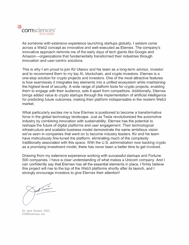 The Eternex SaaS platform integrates an enhanced launchpad functionality and in-demand Web3 solutions into a unified ecosystem that operates as a single mechanism, providing projects with a comprehensive set of tools for sustainable growth and investors with long-term earning opportunities